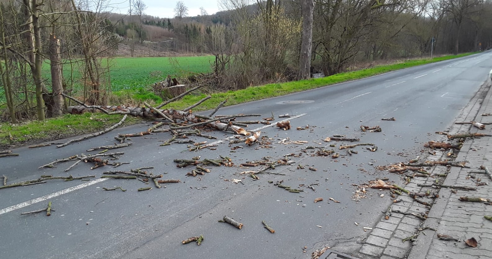 Text vom Melder: Hilfeleistung Sturmschaden Baum auf Straße